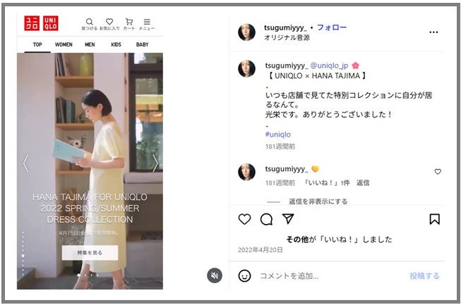 2022年には、UNIQLO × HANA TAJIMA特別コレクションに登場。